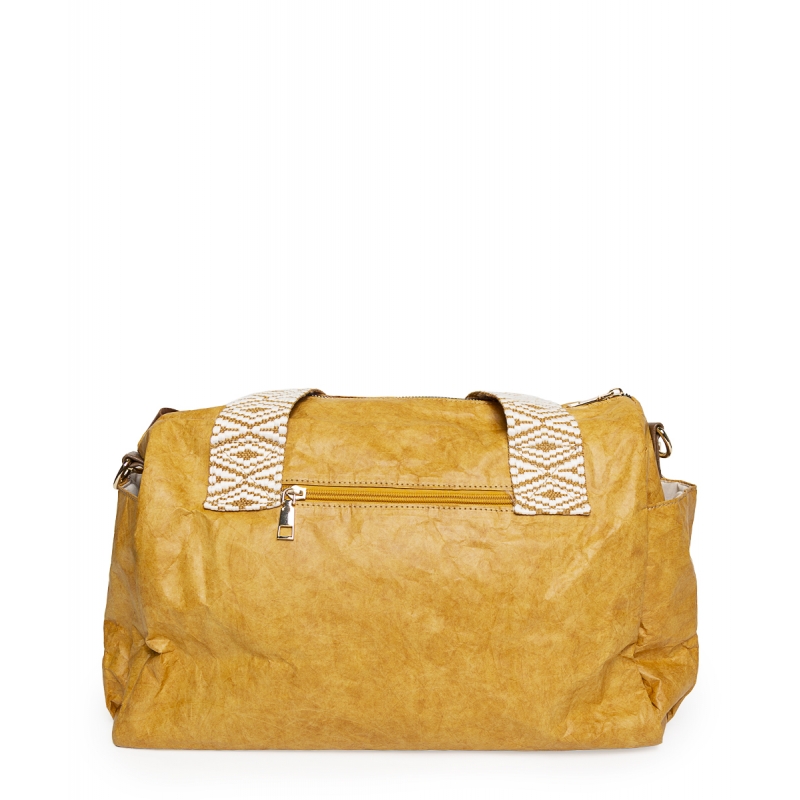 Bolso deportivo con dos bolsillo delantero, bolsillo cremallera en parte trasera, asa al hombro de cinta de algodón bitono, y asa larga regulable extraíble