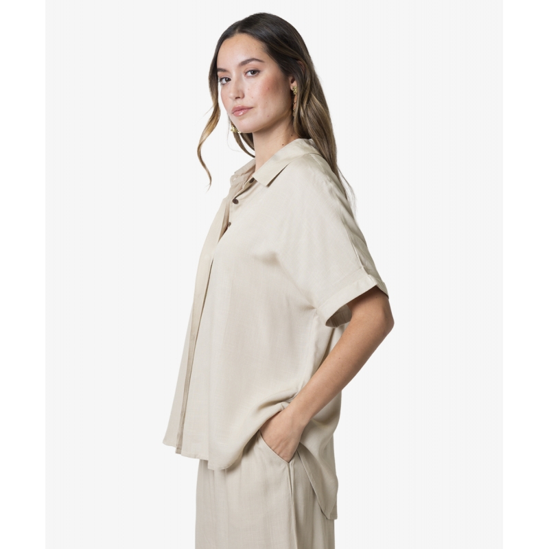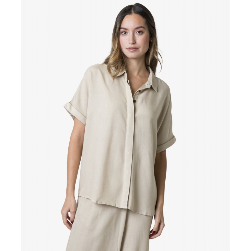 Camisa con cuello camisero y manga corta, vuelta en la bocamanga y tapeta de botones escondida