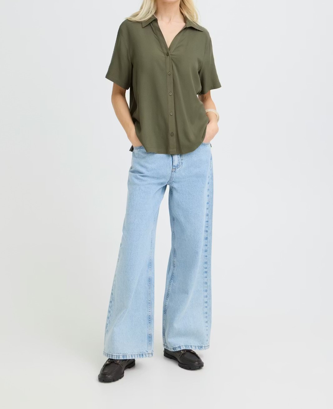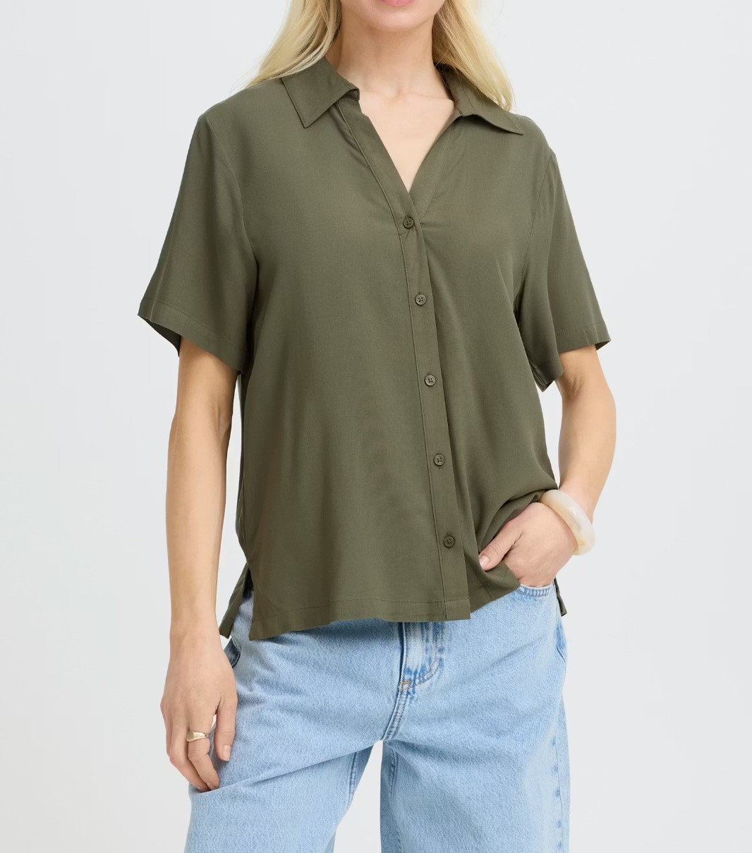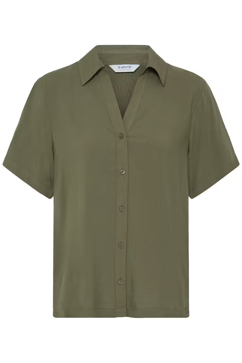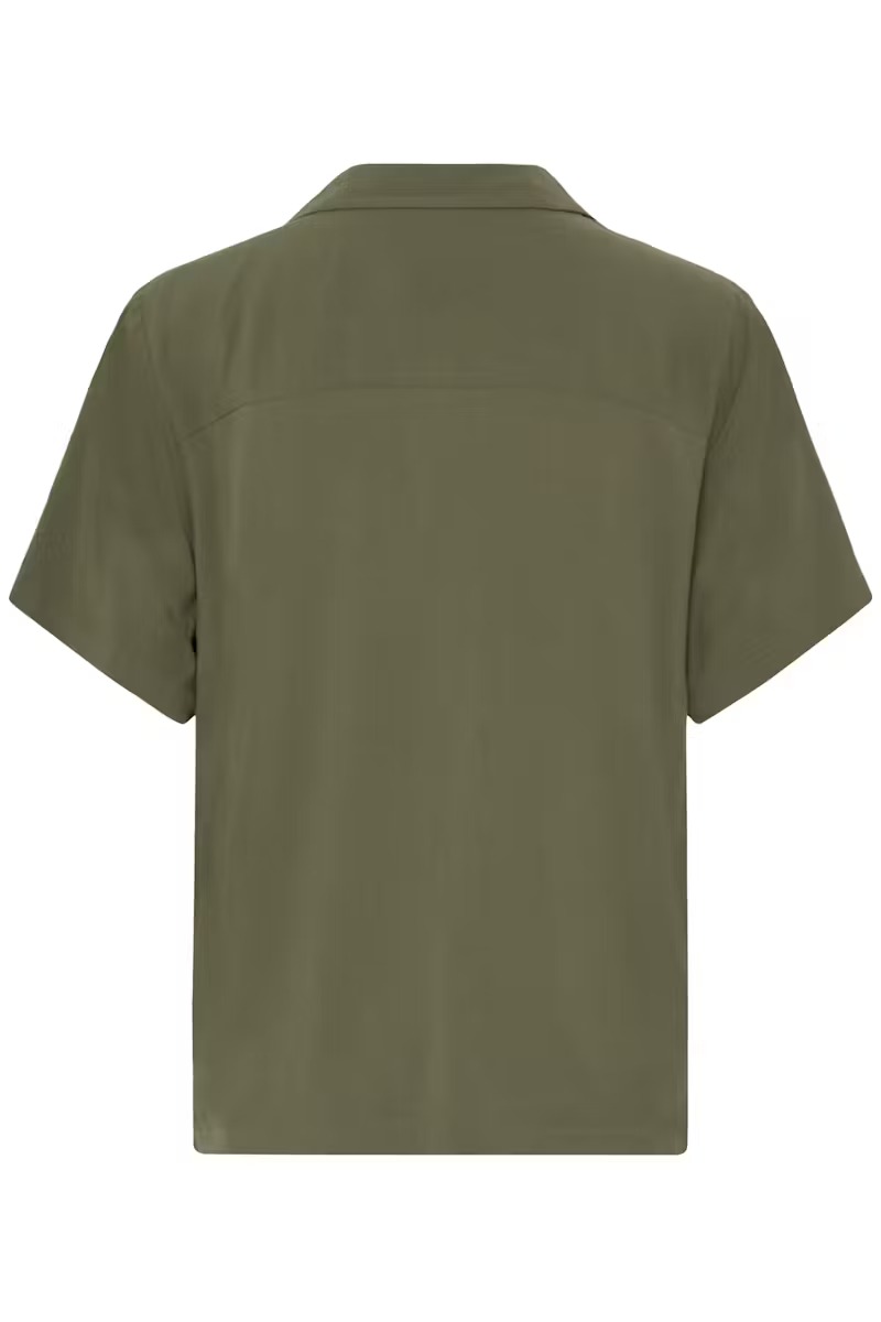 Camisa en manga corta y corte holgado, ideal tanto para ocasiones informales como para la oficina. El cierre de botones y su tejido ligero ofrecen comodidad y un estilo sencillo para el día a día.