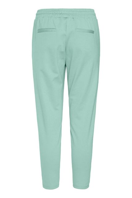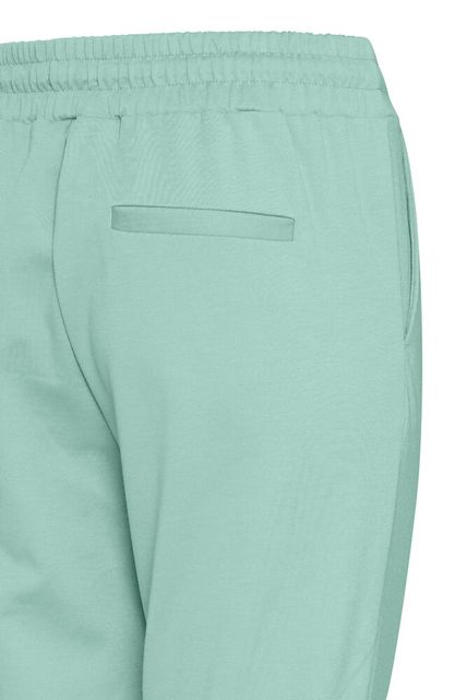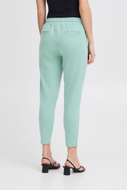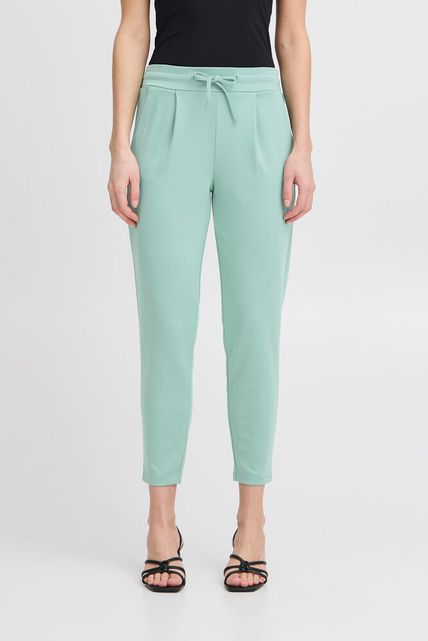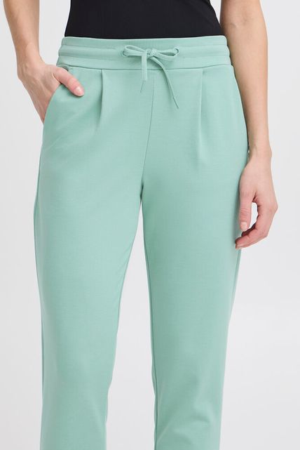 Pantalones con corte ajustado, cintura elástica con cordón y detalle de pliegues delanteros.