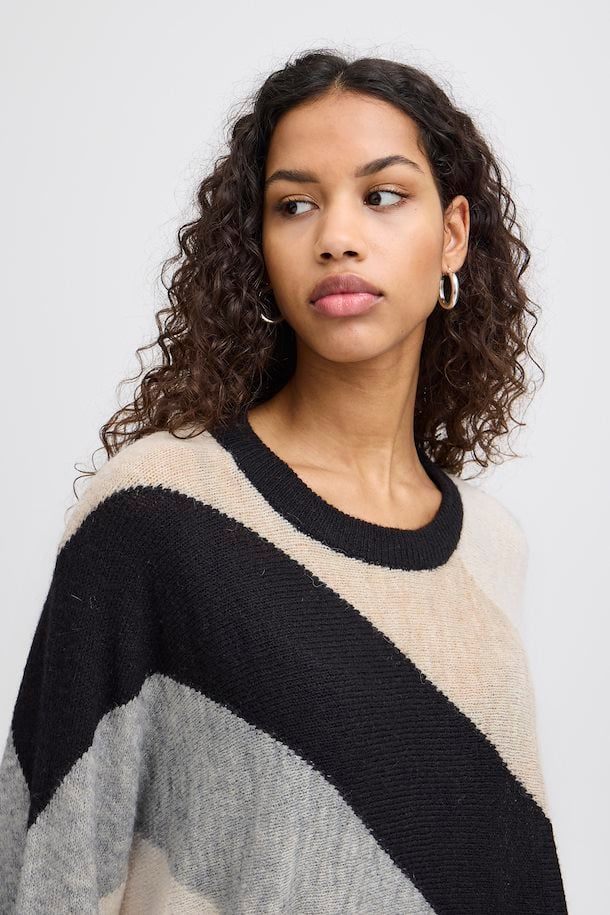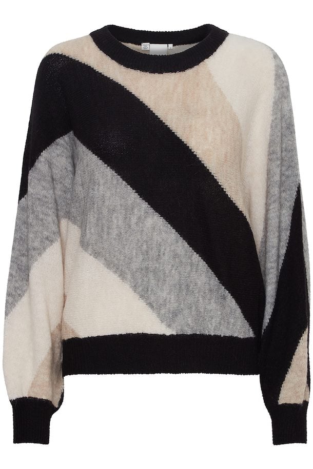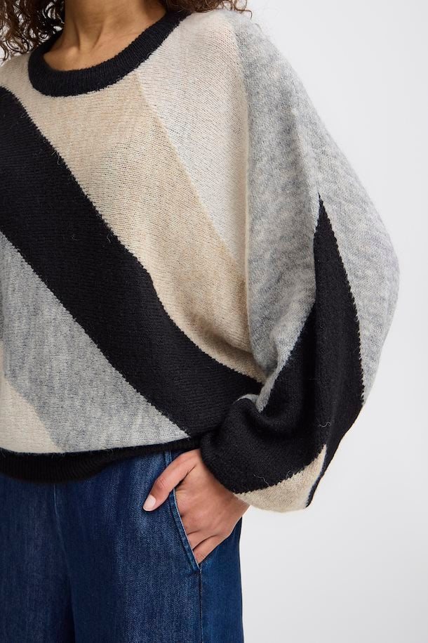 JERSEY estampado cálido con 15% lana de alpaca estilo holgado. Mezcla de materiales, corte regular con cuello redondo.