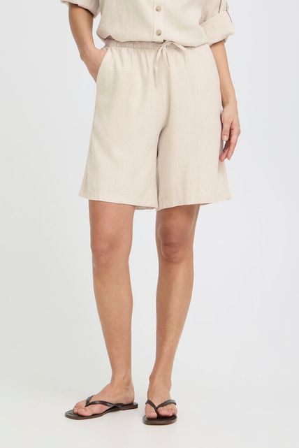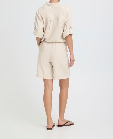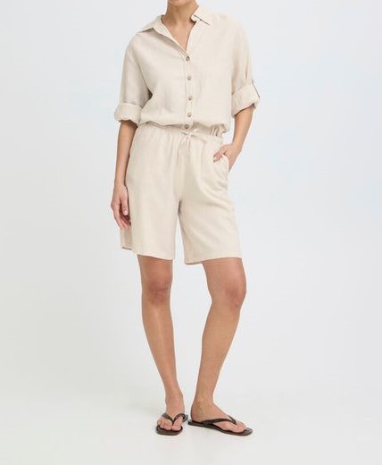 shorts en corte holgado y cómoda cintura elástica con cordón ajustable. Su largo por encima de la rodilla ofrece un estilo versátil, perfecto para ocasiones informales o veraniegas.