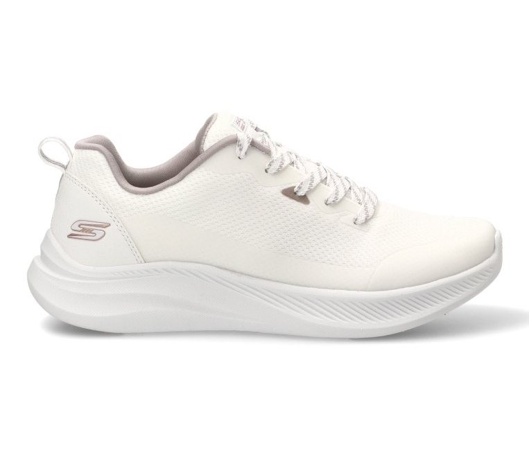 Este modelo vegano con Stretch Fit® cuenta con una parte superior de malla con detalles de hotmelt, cierre de cordones y una cómoda plantilla acolchada Skechers Memory Foam™. BOBS