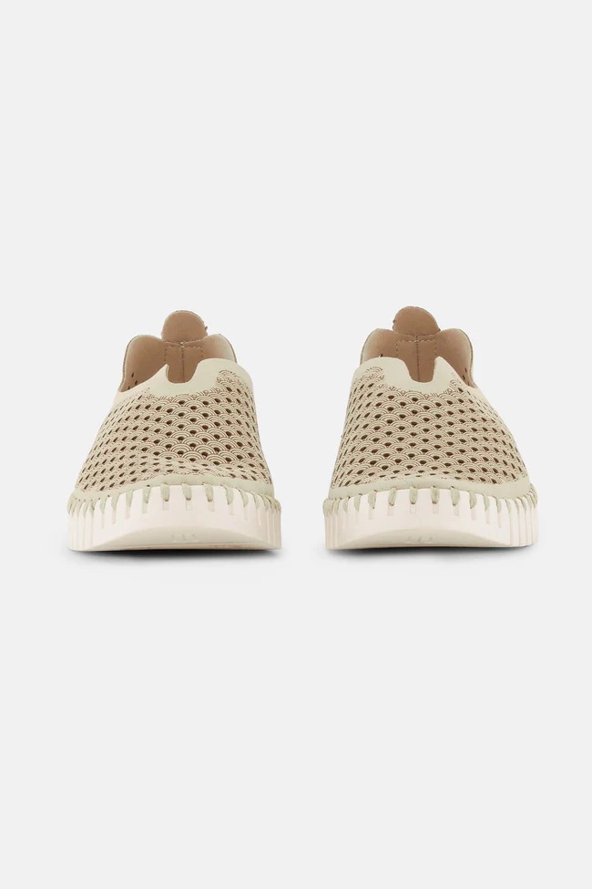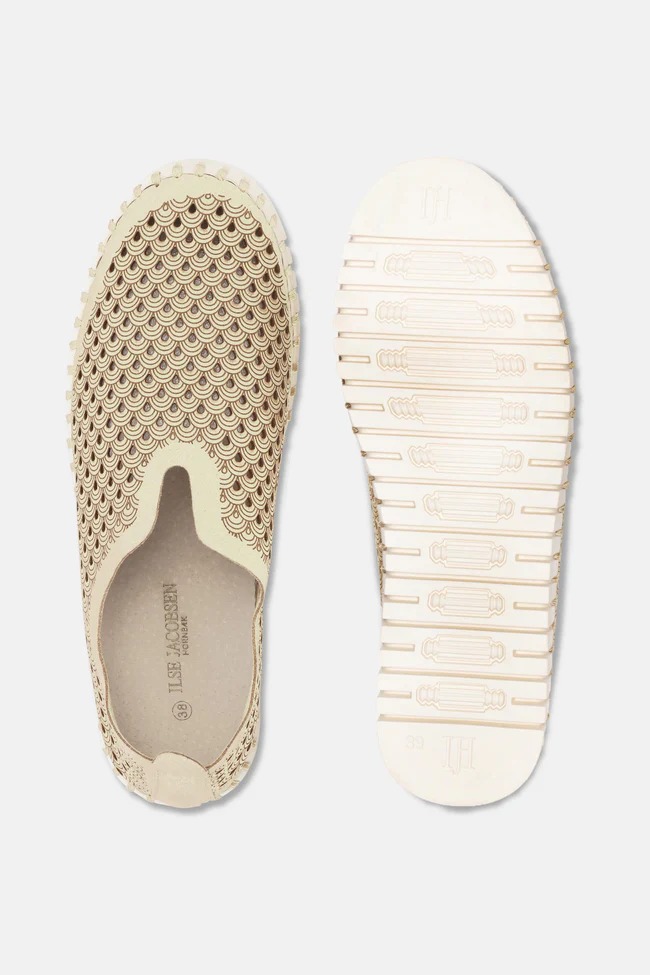 Zapatos Planos para mujer, apreciado por su comodidad, diseño ligero y su estilo versátil. Confeccionados en microfibra reciclada con un delicado patrón láser y montados sobre la flexible suela Tulip. Cosidos con hilo reciclado del mismo tono, sin usar pegamento. La plantilla acolchada ofrece soporte durante todo el día.