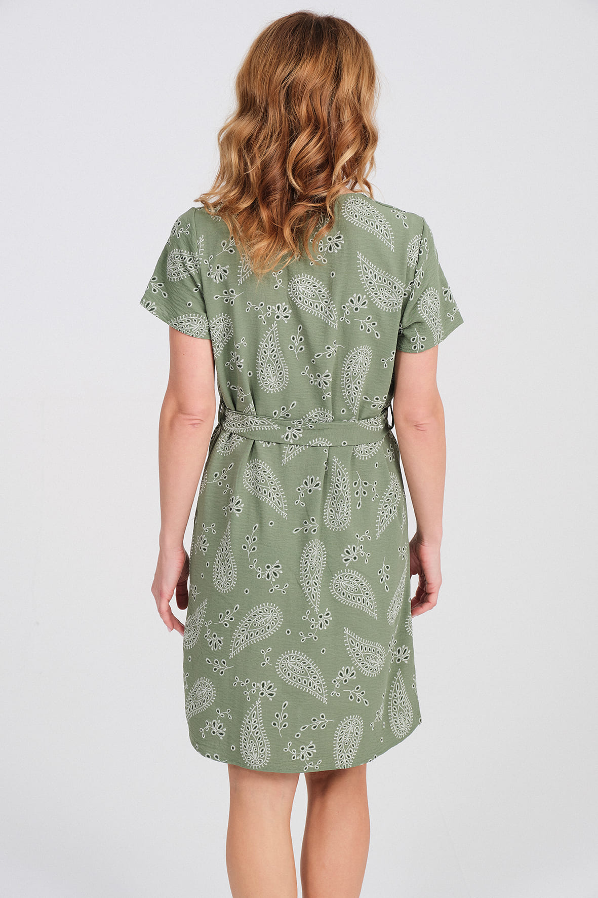 Vestido «Sage Paisley» – Verde Oliva con Bordado Inglés