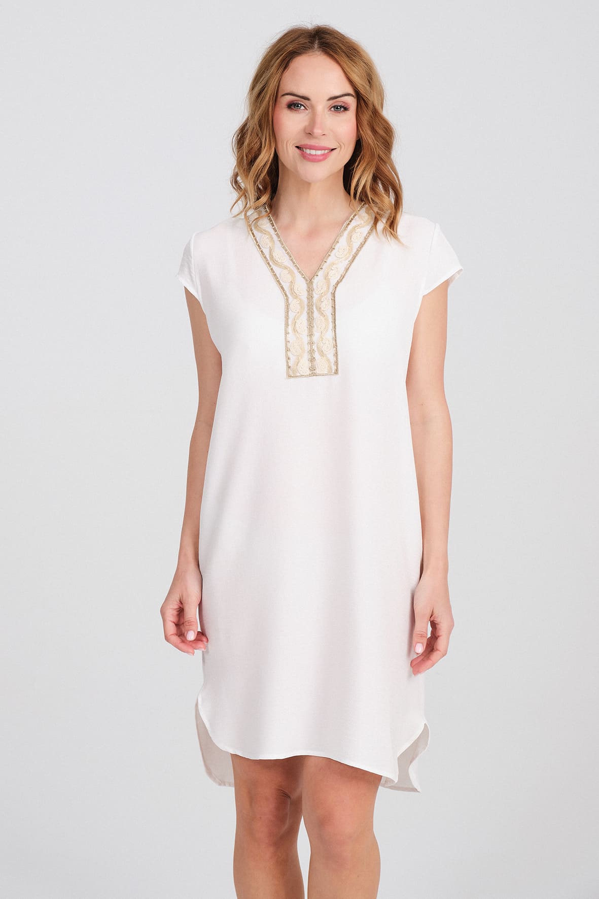 Vestido Túnica «Pearl» con Pechera Bordada